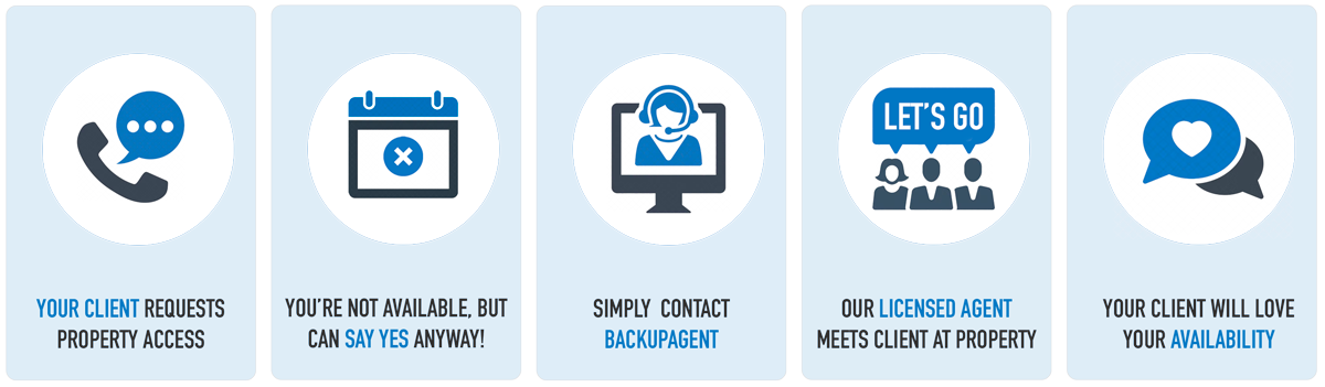 If you receive a request for access and you are unavailable, notify BackupAgent and a member of our team will meet your client on your behalf. We not competitors, but an extension of your showing team!